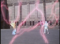 Energy flashes, electricity crackles about, as VR JB & Eliminator are teleported away from the city. |