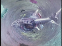 A Quantum Cruiser is sucked into the VR Vortex, then is un-sucked. |