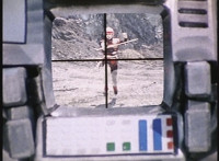 Recycled, but first time in context; cuts follow-up close-up of her pulling out Laser Pistol. |