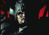 Close on Grimlord talking and looking from side to side. |
