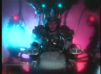 Karl Ziktor morphs into Grimlord and materializes onto his throne. |