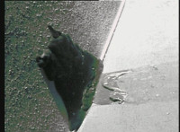 Shot 1 trims zoom in past Japanese man and cuts before more seepage; shot 2 plays in reverse. |