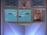 General Ivar talks as the virtual mutants watch from behind the energy screen. |