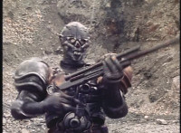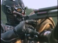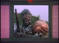 Cuts follow-up close-up of Gunslinger's head with antenna. |