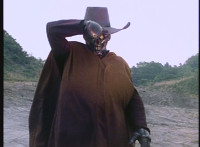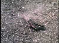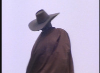 Gunslinger's hat hits a rock and explodes. |