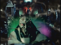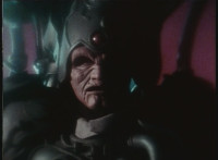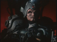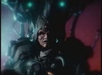 Grimlord's energy screen above the mutants in the Dungeon continues forming an image of Colonel Icebot walking forth against a prismy background. |