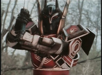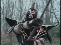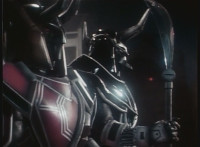 Karl Ziktor morphs into Grimlord and materializes onto his throne. |