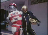 Recycled, per source; Cuts follow-ups of VR JB posing and Skybase transforming into Techno Bazooka. |
