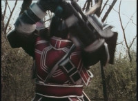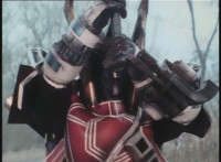 VR Ryan kicks Dice's lance, then dodges, only to end up flipping over when he slashes again, but quickly gets up and out of the way when he strikes once more. VR Ryan then gets jabbed with the butt of the lance, and flipped completely over by it. Dice slashes his lance once more, VR Ryan stops the blade between his hands, holding it place. Dice struggles as VR Ryan slowly gets up with the blade between his hands, keeping hold of it for a bit until he jerks it to the side and throws a kick into Dice, knocking him away. |