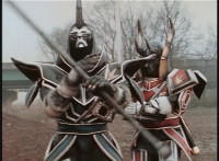 The Swordbot Brothers stand side by side, weapons ready, zoom in on Slice. |