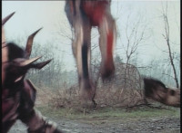VR JB's POV of VR Kaitlin being smokily slashed by a Skug, though she blocks the strike of a second, as more lurk about, and VR Ryan appears in the smaller insert display. |
