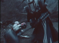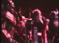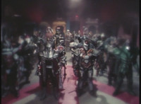 Final shot fades out; Cuts follow-ups of Blade's head falling to the ground and his body collapsing, then reaction shots of their generals and Grimlord. |