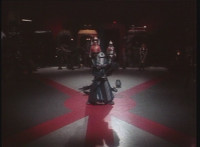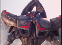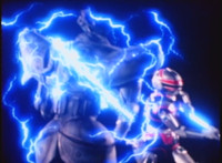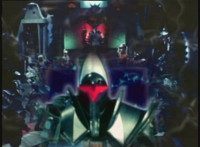 Karl Ziktor morphs into Grimlord and materializes onto his throne. |