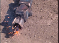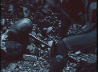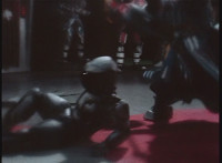 Night darkened; trims start to remove Hammerbot falling down with face exposed; final shot freeze-frames as US footage plays over it, then plays in reverse when it finishes; cuts follow-ups of circuitry blinking. |