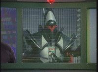 Grimlord's energy summons an energy screen above the mutants in the Dungeon, forming an image of Colonel Icebot as he talks close with a fist raised that he slowly lowers. |