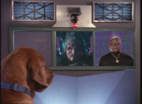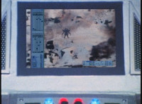 Freeze-framed; Altered to fit Skybase monitor, which is recycled backplate footage. |