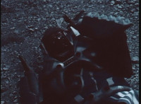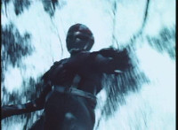 Night darkened; cuts follow-ups of VR Ryan staggering away. |