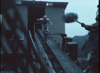 Inexplicably cuts follow-up of Blade leaping up atop a chamber. |