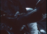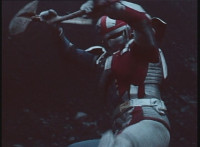 Night darkened (except for the sun shining on Hammerbot shot); cuts final shot before we see blackened Japanese face fully. |