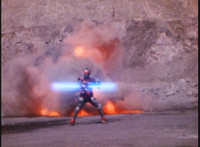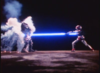 VR JB nod-talks quickly, then twirls his Laser Lance about, slicing upward diagonal, then downward diagonal. |