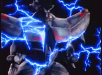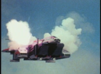 Three Air Fighters and Ivar's Ravage Tank in flight mode swoop around and fire pink electricity, bursting the Skybase, as more Air Fighters also fire upon it with same results. |