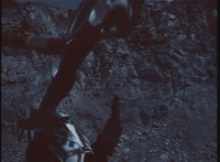 Recycled, but first time in context; Night darkened; cuts whole prior sequence of Hammerbot smashing rocks and causing an avalanche, him hitting VR Ryan, wind knocking him back, VR Ryan noticing the sun, and more facing off. |