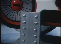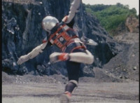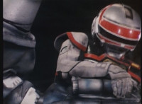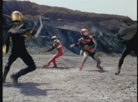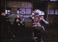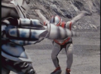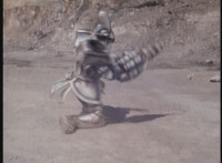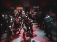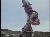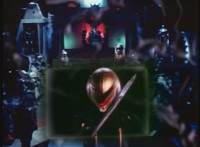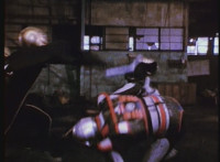 Cuts prior shot of VR JB glancing about; Cuts follow-up of Drillbot due to onscreen Japanese text. |
