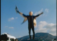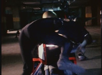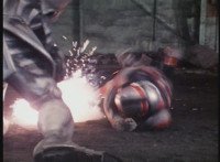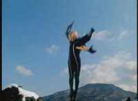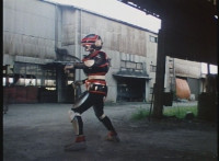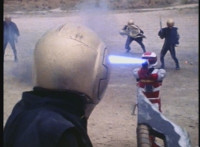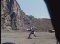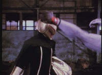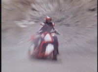 Cuts follow-ups of VR JB on bike having flashbacks, then whipping out Saber via stock footage. |