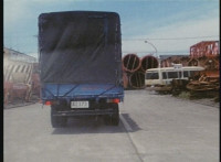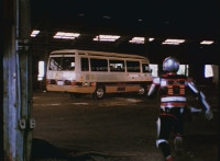 Cuts follow-up shot of parked van and then VR JB dismounting. |