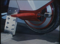 Fighterbike somehow loses its binds and locks, driving off on its own, knocking down Skugs and General Ivar. |