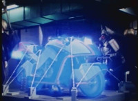 Skugs slice the VR Fighterbike with a giant saber, and hit it with a mallet. |