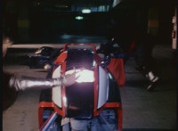 Shot 2 cuts before Fighterbike passes by, so you can't see the prominent Suzuki symbol. |