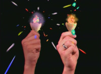 Kaitlin & Ryan hold up their glowing Virtualizers. |