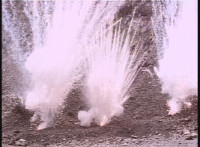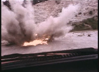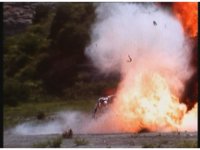 Trims start to remove plane and cuts before shot transitions into different explosion. |