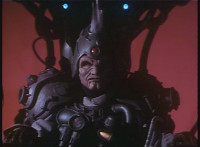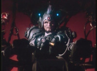 Karl Ziktor morphs into Grimlord and materializes onto his throne. |
