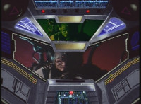 Zoom in on VR JB in the cockpit, as he looks down at the monitor. |