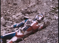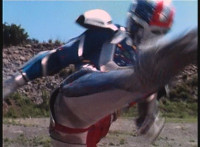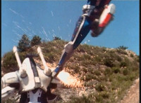 Cuts prior footage of VR Ryan on Turbo Cycle getting blasted off by Polarbot; shots 5 & 6 are recycled, but first time in context; cuts follow-up of VR Ryan sparkily punching Polarbot. |