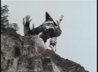 The Ravage Tank plummets backwards over the side of a cliff. |