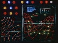 Pan across his laboratory as Colonel Icebot stands looking into a machine. |