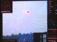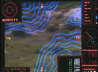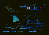 Monitor readout says "danger!!!" a lot and the words "speed" & "alitude"(sp). |