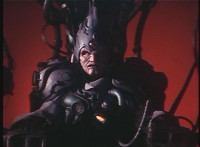 Grimlord's energy summons an energy screen above the mutants in the Dungeon, forming an image of General Ivar, motioning his right hand as he talks close. |