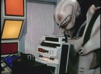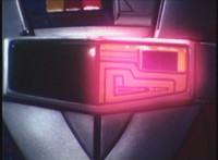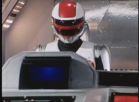 Ballistix presses buttons on the briefcase keypad, causing Trooper Terminator's eyes to flash. |