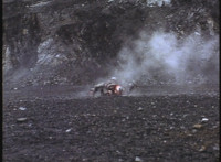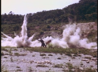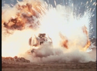 More dirt bursts erupt on the road around Trooper Terminator, who is undeterred. |