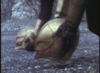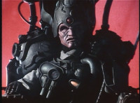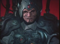 VR Ryan, seeing an opening, quickly runs forth, Trooper Terminator turning to him again and firing his laser as VR Ryan leaps up, blasting his shoulder. VR Ryan ignores it and sparkily chops off Trooper Terminator's head. Trooper Terminator's headless carcass rolls around the field repeatedly, aimlessly. |