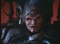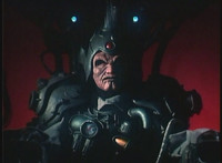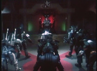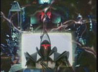 Karl Ziktor morphs into Grimlord and materializes onto his throne. |