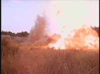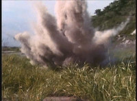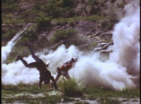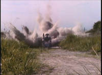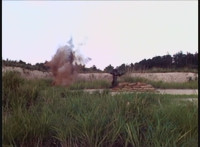 Clutching a puppy, Cannonnose collapses onto a landmine, VR Ryan watching with the box as they explode massively. |