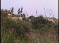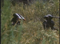 VR Ryan hides in the tall grass, as Trooper Terminator flashes eyes and scans the area with monoeye vision, then lifts his head up, as we zoom in on VR Ryan's scalp. |