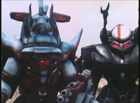 Blue Boar & Tankotron watch silently. Cannonnose readies his right arm gun. |