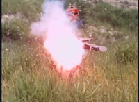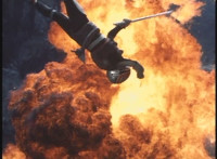 VR JB flips over away from one explosion just for another to erupt near where he lands. |