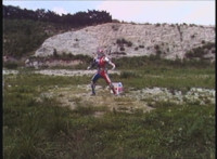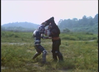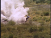 POV scan picks up numerous landmines in the area, VR Ryan nod-talks, zoom in on the box again, VR Ryan suddenly notices Ballistix & Cannonnose in the weeds nearby. He quickly dashes behind them, then runs up, leaps up, flips over, and double kicks them just as they spot him. He then hits each one, POV scans the landmines again, then leaps up and over beside the box, avoiding the mines. |